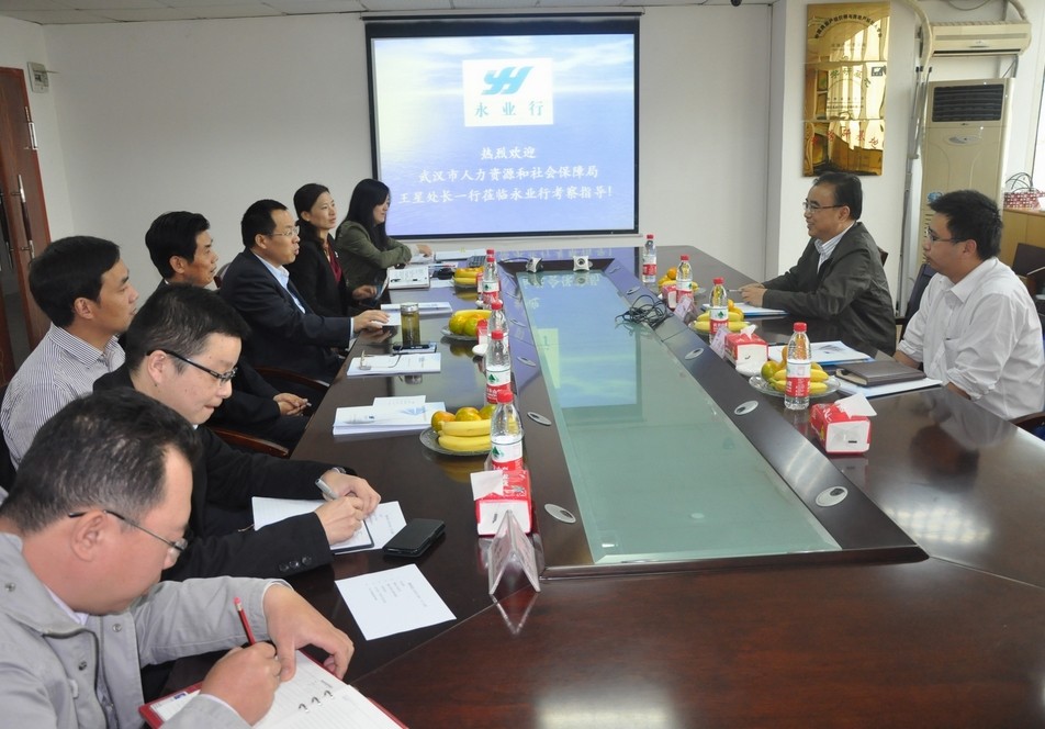 10月22日,武汉市人力资源和社会保障局市场管理处处长王星、市人才服务中心人事代理部副部长丁伟明来永业行考察并指导工作。 公司董事长方国成、总裁潘世炳、副总裁田新丑、综合管理部负责人杨雪莲、人力资源部负责人杨乐等热情接待了王处长一行。董事长方国成代表永业行对王处长、丁部长表示欢迎,总裁潘世炳介绍了公司发展历程、人力资源管理现状及公司未来发展规划;观看永业行专题片并听取公司情况介绍后,王处长等充分肯定了永业行取得的成绩,并从公司发展战略及人力资源建设等方面提出了好的建议;大家就大学生就业实习基地建设与发展、人才战略等有关内容展开了热烈交流。