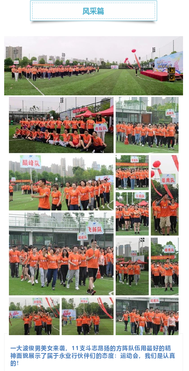 迎初夏之朝露,展永业行锋芒。2018年5月27日,永业行第二届趣味运动会拉开帷幕,来自总部、省内外分公司的360余名运动员组成11支队伍,身着象征着希望与热情的橘黄色文化衫,整齐集结青山江滩,点燃运动热情、释放青春活力,在健康向上的欢乐氛围中,共同迎接永业行成立25周年。