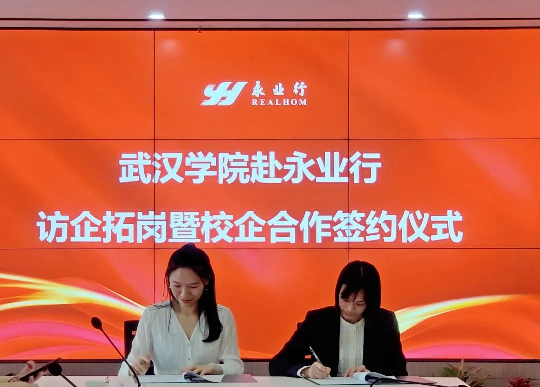 2022年5月17日下午,永业行与武汉学院举行校企合作签约仪式,双方就人才培养、项目合作、产学研融合等校企合作事宜进行了交流和沟通。武汉学院副校长周承早,永业行党委书记、董事长潘世炳等出席仪式。