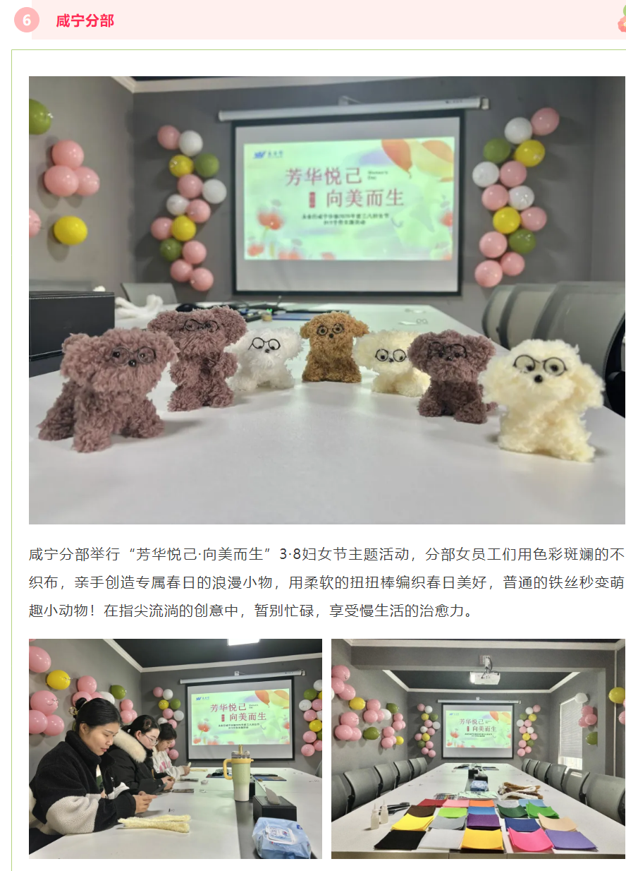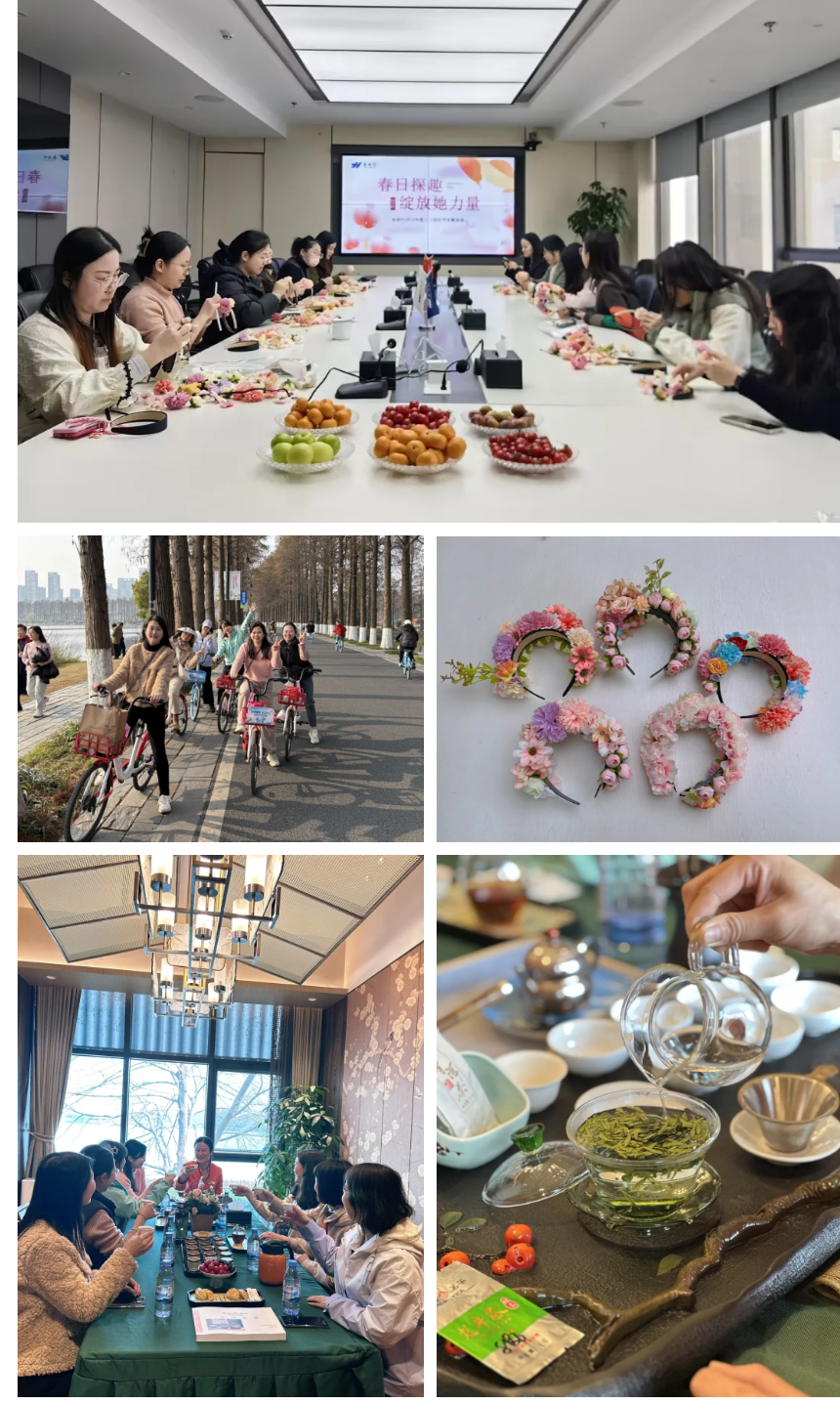 繁花有暖,遇见美好。投资金融事业群开展“春日探趣·绽放她力量”主题活动,以"自然之美、生活之美、文化之美"定格“她”魅力。在湖光山色与春日繁花的东湖绿道,一路破风前行、欢声笑语,传递着她们的团结与坚韧;在茶艺课堂上,氤氲茶香间,温杯、置茶、冲泡、奉茶……一举一动间尽显她们的优雅与从容;在非遗簪花手工区,一双双巧手将绒线缠绕成花,传统技艺在指尖焕发新生,映衬着她们的活力与自信。"每朵花都有独特的绽放姿态",事业群的每一个“她”都将以更加饱满的热情、更加昂扬的姿态投入工作,持续绽放"她力量",书写独属的精彩篇章。