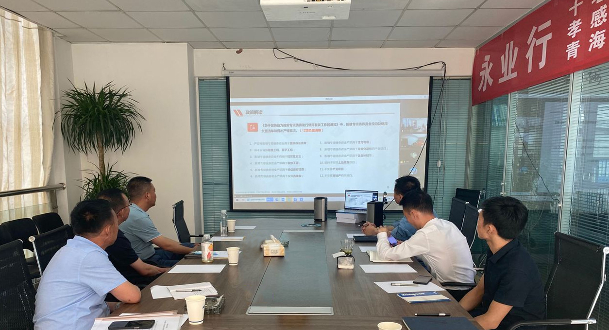 8月7日,青海省海南藏族自治州同德县副县长王有业一行到访永业行青海分部,就地方政府专项债劵主题进行考察调研。受疫情防控影响,永业行副总裁雷小军、不动产事业群常务副总经理郭华、青海分部总经理余国林等通过线上线下形式与考察团座谈交流。
