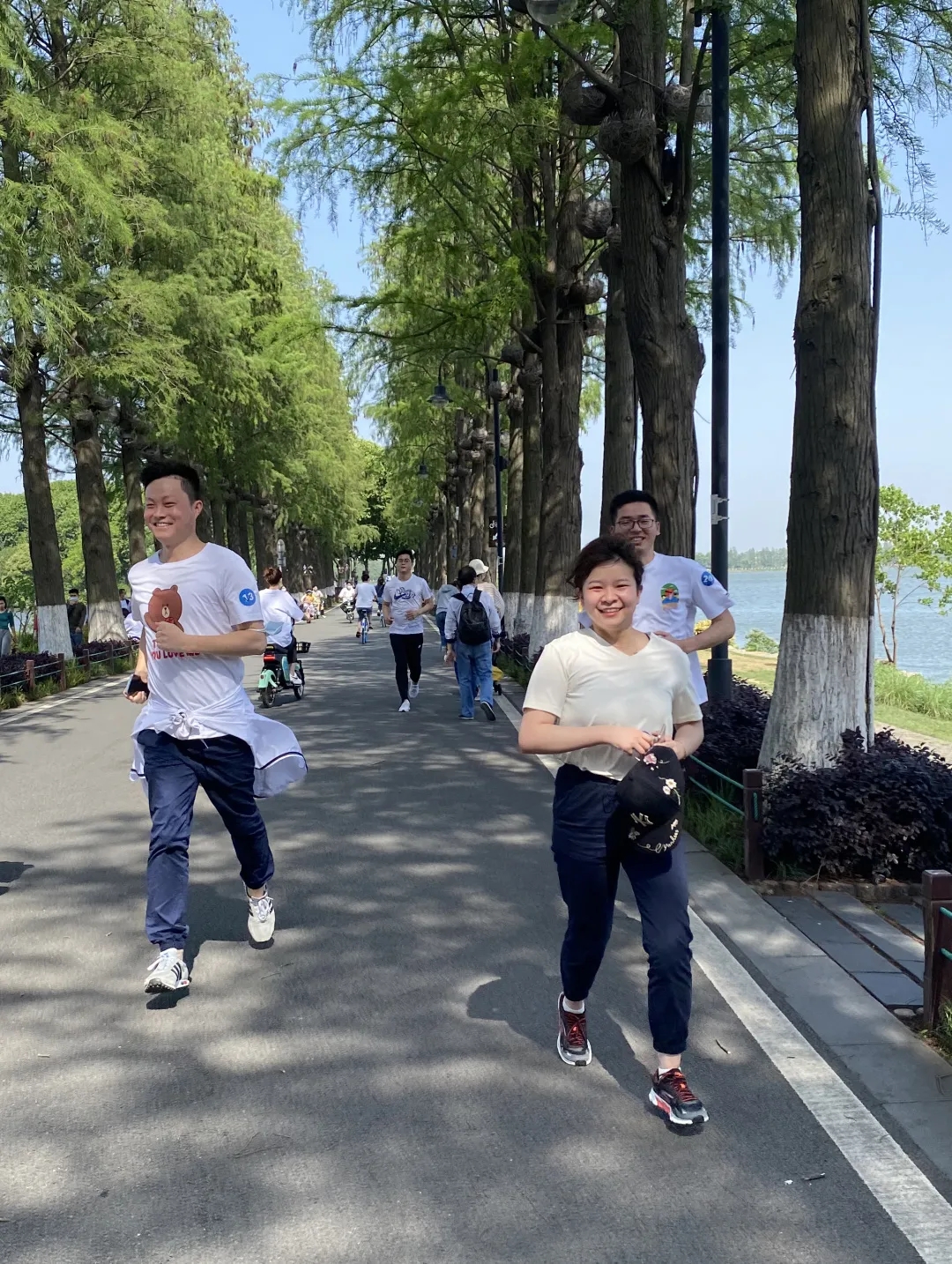 春光正好,目之所及,一片湖光山色。伴着醉人景致,小伙伴们向着5公里外的终点奔赴而去。湿润的湖风带来丝丝凉意,也为平日忙于工作的人们驱散了疲惫和压力。